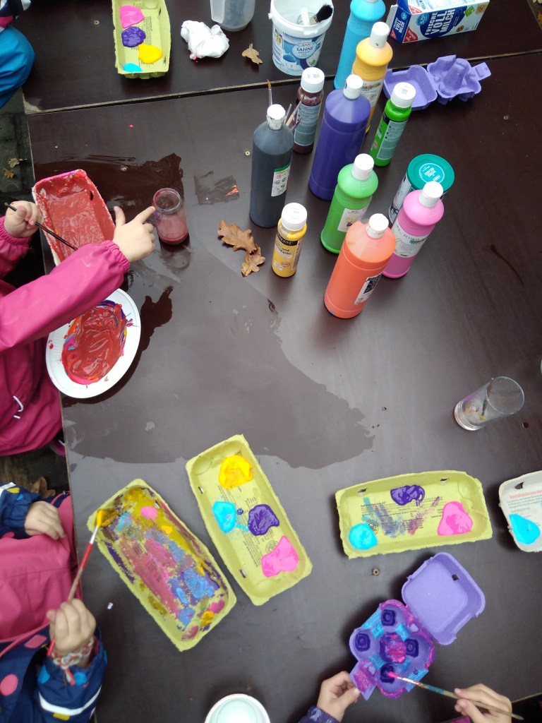 Der Sandkasten lädt zum Kuchen backen und Burgen bauen ein. In der Bau- und Matschecke, können die Kinder mit Steinen, Stöckern und anderen Materialien unterschiedlichste Bauwerke erschaffen.